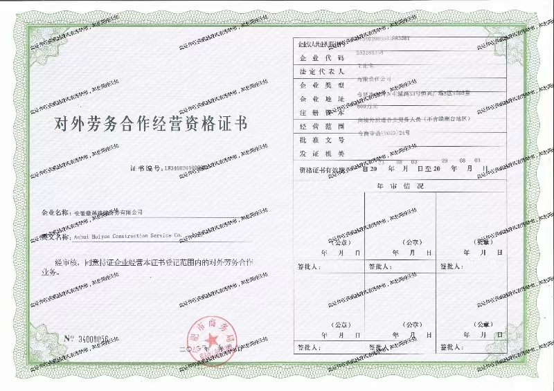 對(duì)外勞務(wù)合作經(jīng)營(yíng)資格證書...